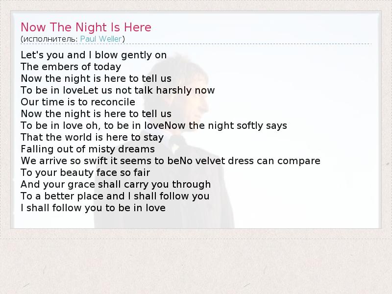 А как ты думаешь, о чем песня "Now The Night Is Here" ?