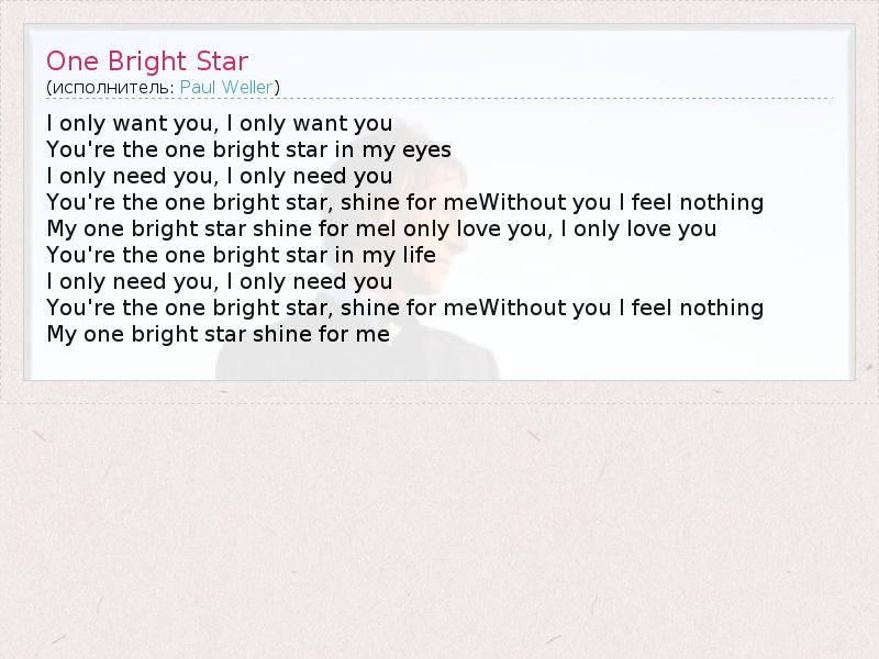 А как ты думаешь, о чем песня "One Bright Star" ?