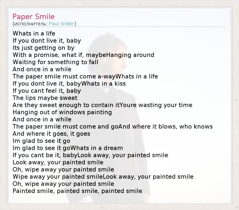 А как ты думаешь, о чем песня "Paper Smile" ?