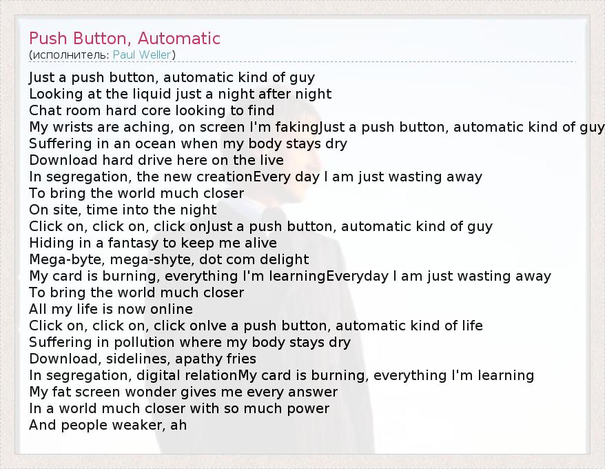 А как ты думаешь, о чем песня "Push Button, Automatic" ?