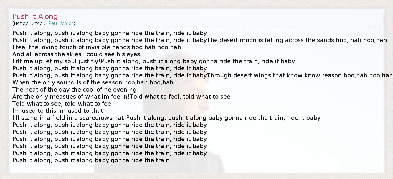 Push it along, push it along baby gonna ride the train, ride it babyThrough desert wings that know know reason hoo,hah hoo,hah
