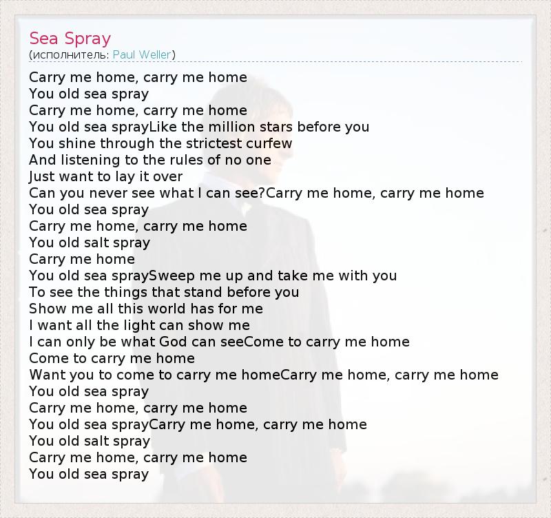 You old sea sprayCarry me home, carry me home