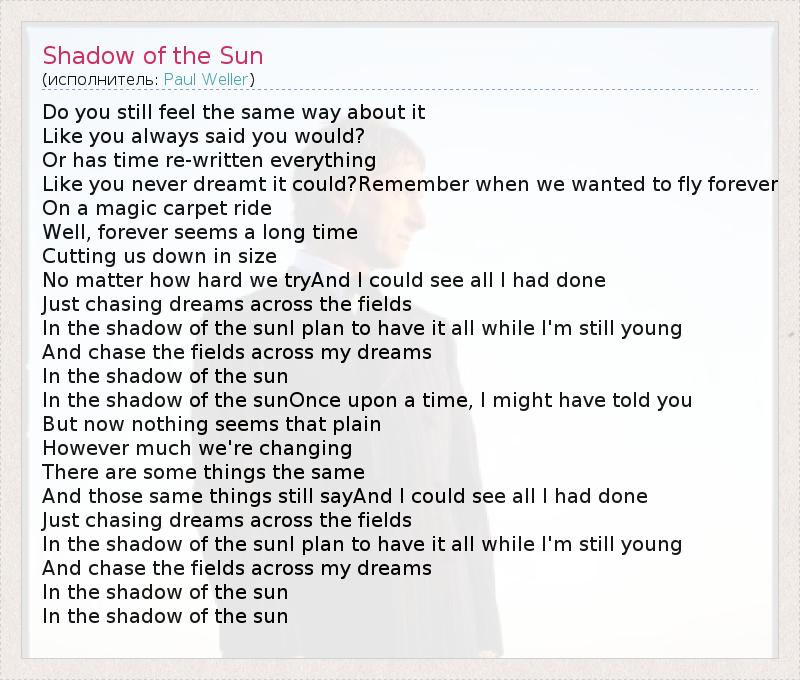 А как ты думаешь, о чем песня "Shadow of the Sun" ?