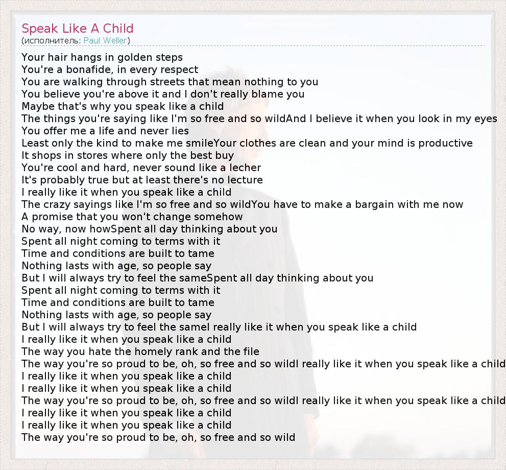 А как ты думаешь, о чем песня "Speak Like A Child" ?