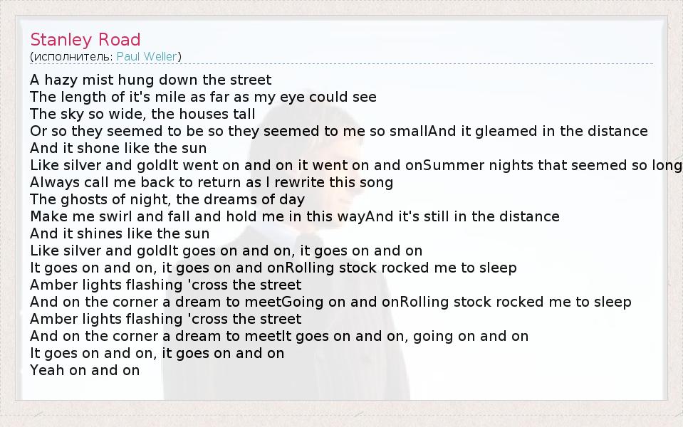 А как ты думаешь, о чем песня "Stanley Road" ?