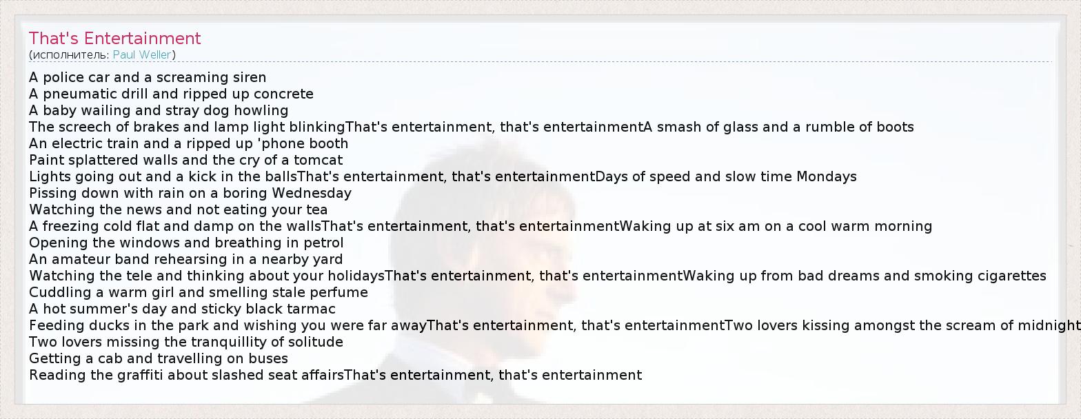 А как ты думаешь, о чем песня "That's Entertainment" ?