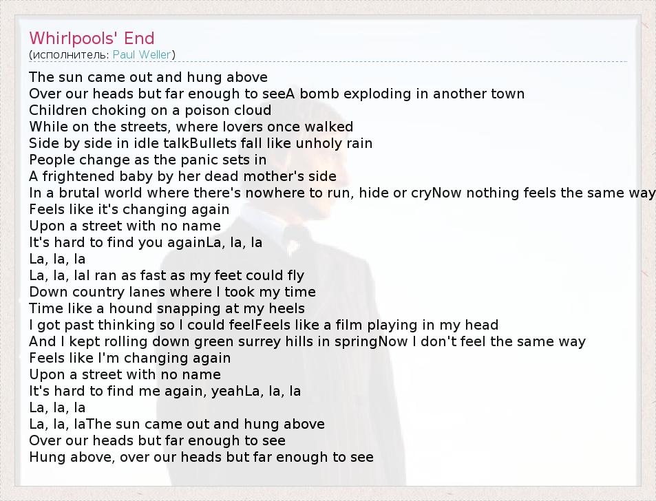 А как ты думаешь, о чем песня "Whirlpools' End" ?