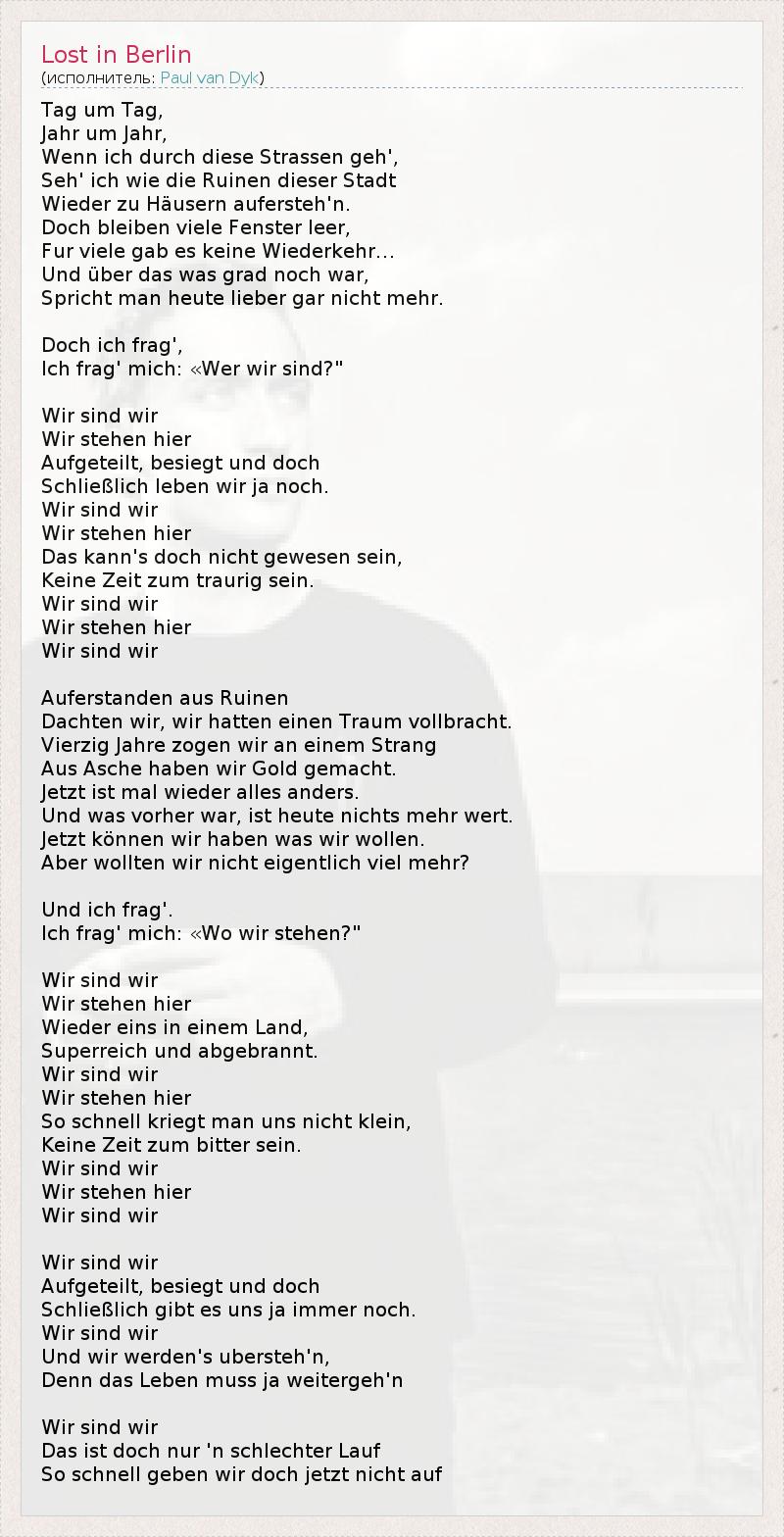 А как ты думаешь, о чем песня "Lost in Berlin" ?