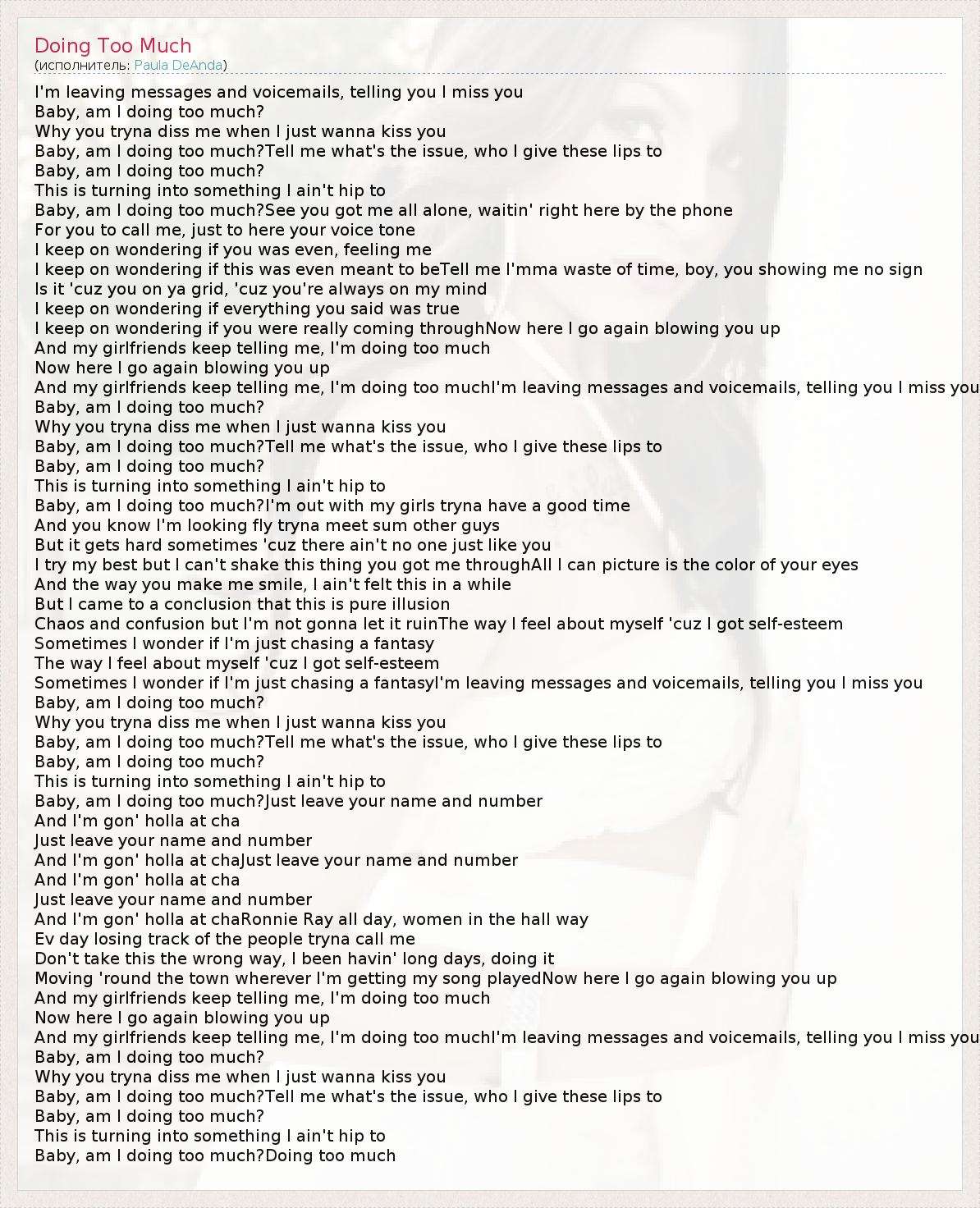 Baby, am I doing too much?Just leave your name and number