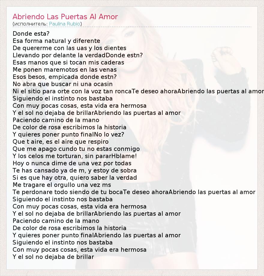 ГлавнаяИсполнителиPaulina RubioAbriendo Las Puertas Al Amor