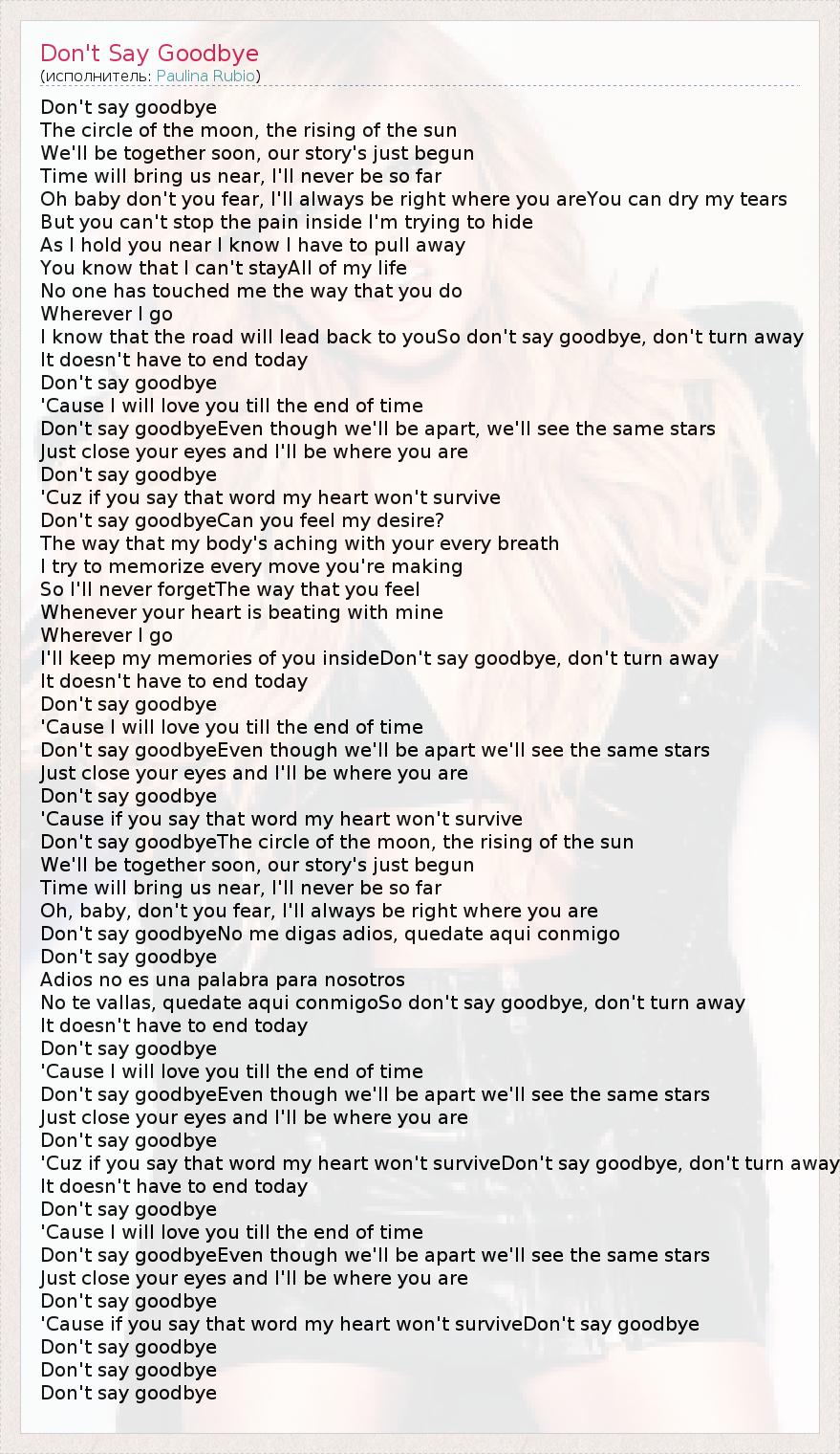 А как ты думаешь, о чем песня "Don't Say Goodbye" ?