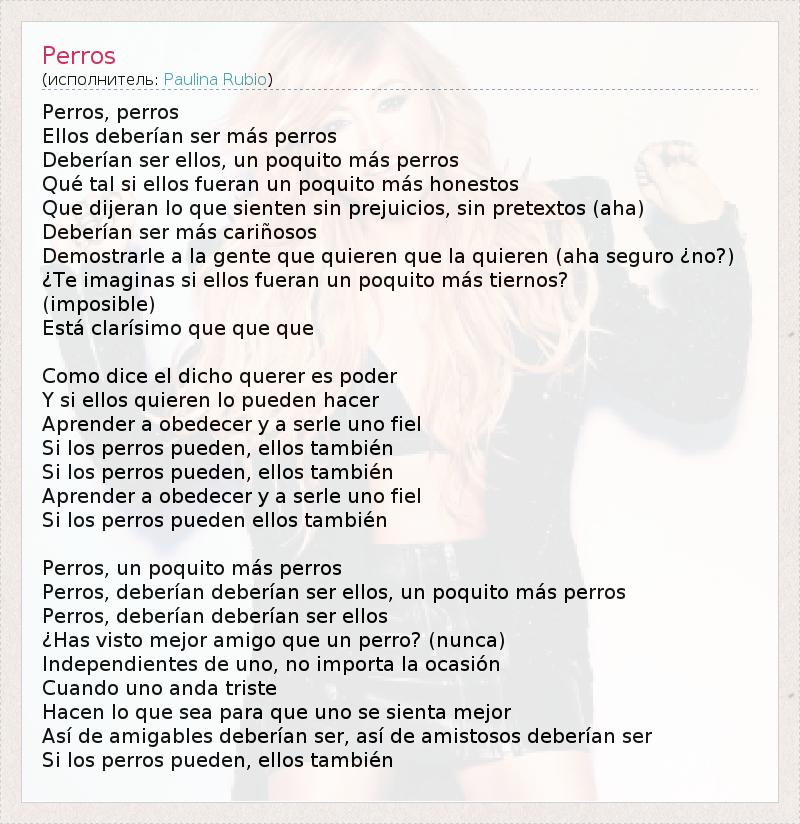 Perros, perros Ellos deberían ser más perros Deberían ser ellos, un poquito más perros Qué tal si ellos fueran un poquito más honestos Que dijeran lo que sienten sin prejuicios, sin pretextos (aha) Deberían ser más cariñosos Demostrarle a la gente que quieren que la quieren (aha seguro ¿no?) ¿Te imaginas si ellos fueran un poquito más tiernos? (imposible) Está clarísimo que que que Como dice el dicho querer es poder Y si ellos quieren lo pueden hacer Aprender a obedecer y a serle uno fiel Si los perros pueden, ellos también Si los perros pueden, ellos también Aprender a obedecer y a serle uno fiel Si los perros pueden ellos también Perros, un poquito más perros Perros, deberían deberían ser ellos, un poquito más perros Perros, deberían deberían ser ellos ¿Has visto mejor amigo que un perro? (nunca) Independientes de uno, no importa la ocasión Cuando uno anda triste Hacen lo que sea para que uno se sienta mejor Así de amigables deberían ser, así de amistosos deberían ser Si los perros pueden, ellos también