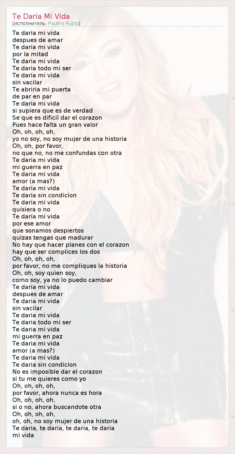 А как ты думаешь, о чем песня "Te Daria Mi Vida" ?