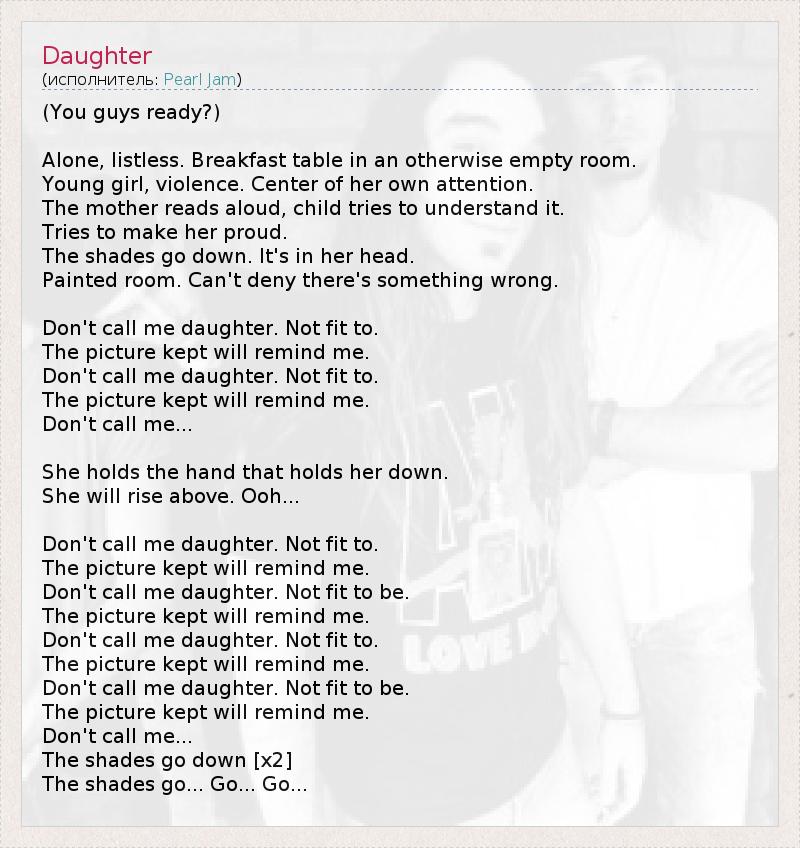 Это интересно:Одна из четырех главных групп (наряду с Nirvana, Soundgarden и Alice in Chains) музыкального движения гранж, пользовавшегося большой популярностью в первой половине 1990-х годов. Более того, и в XXI веке Pearl Jam пока не торопятся завязывать с музыкой – несмотря на то, что их новые работы не достигают того же уровня популярности, что был у их первых альбомов... продолжение
