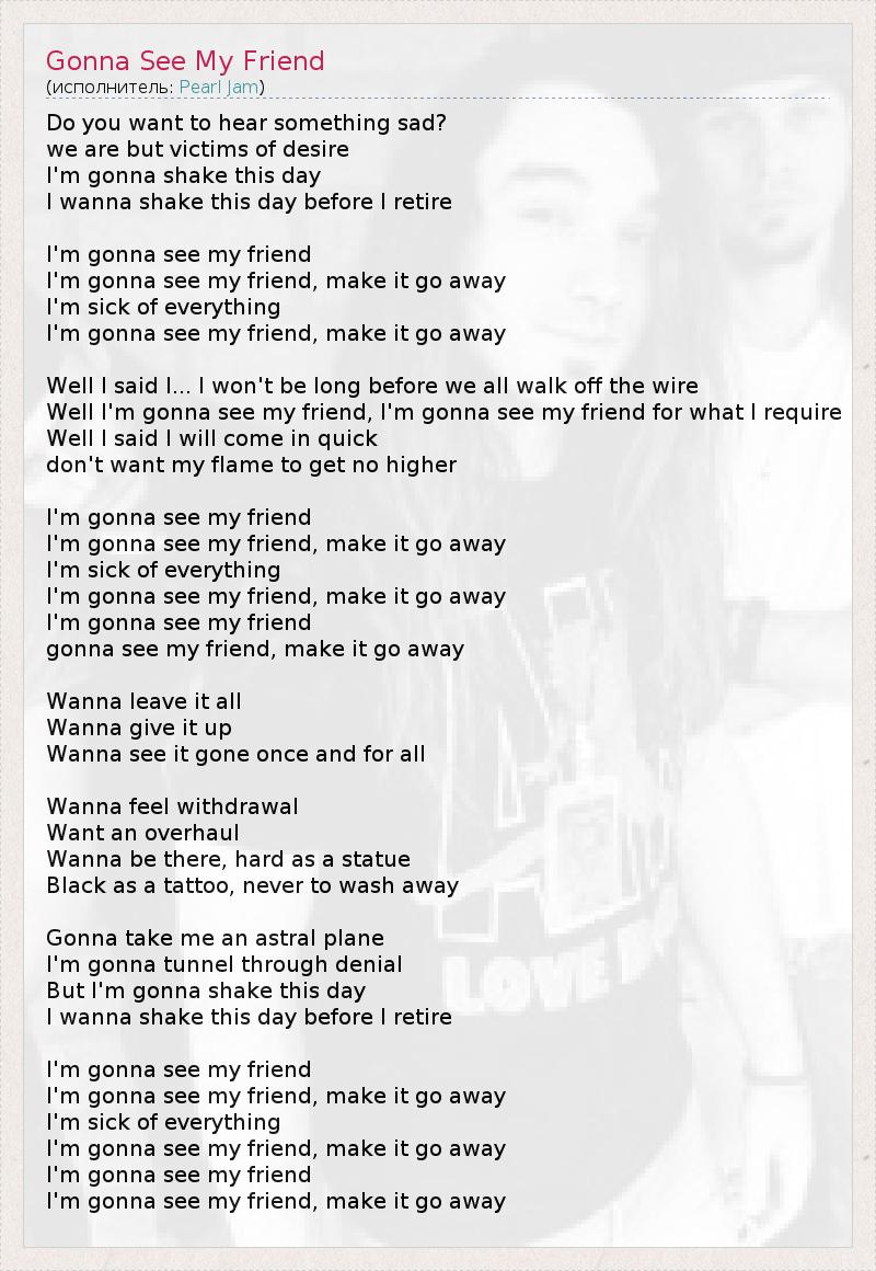 Well I'm gonna see my friend, I'm gonna see my friend for what I require