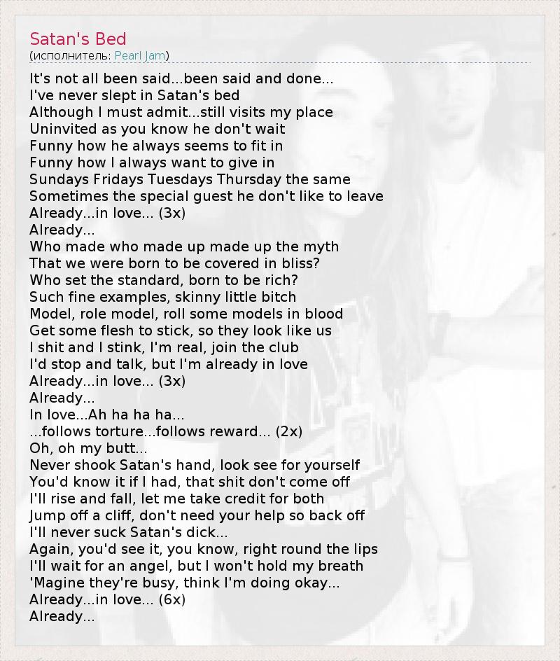 А как ты думаешь, о чем песня "Satan's Bed" ?