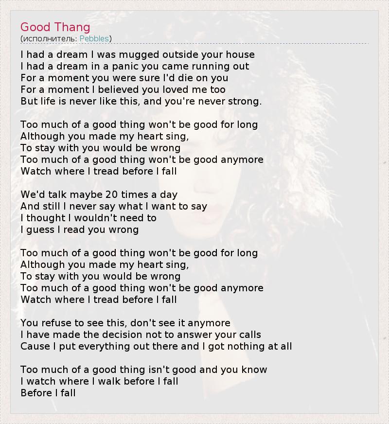 Слишком много хорошего не приносит пользу, и ты знаешь это.