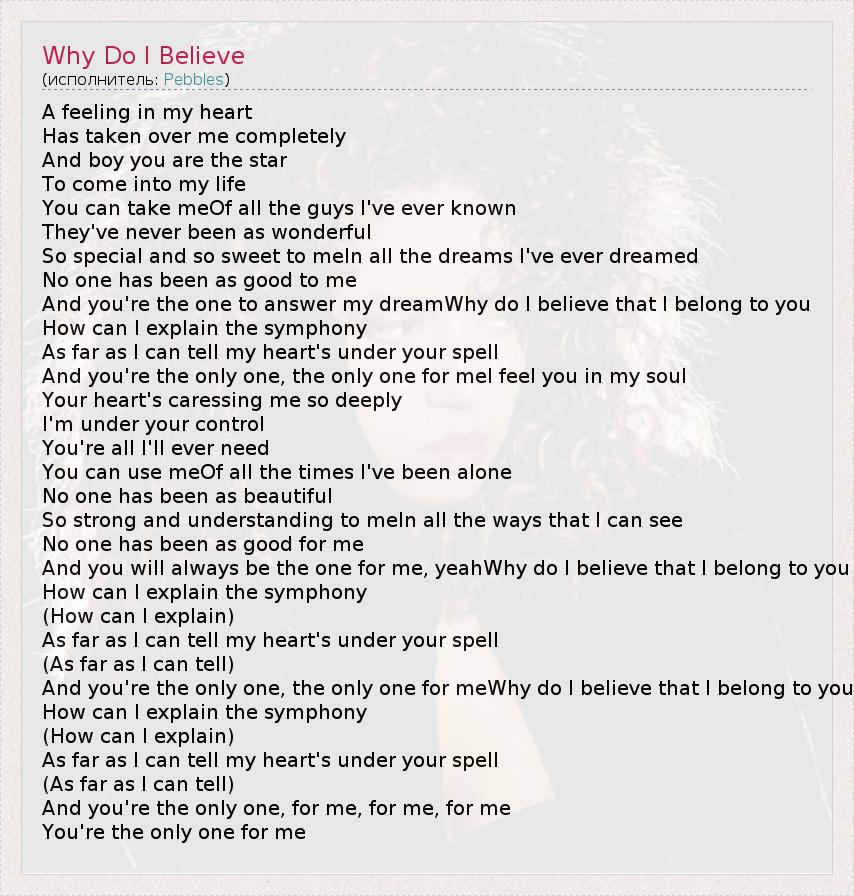 А как ты думаешь, о чем песня "Why Do I Believe" ?