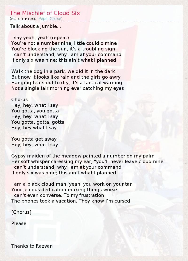 А как ты думаешь, о чем песня "The Mischief of Cloud Six" ?