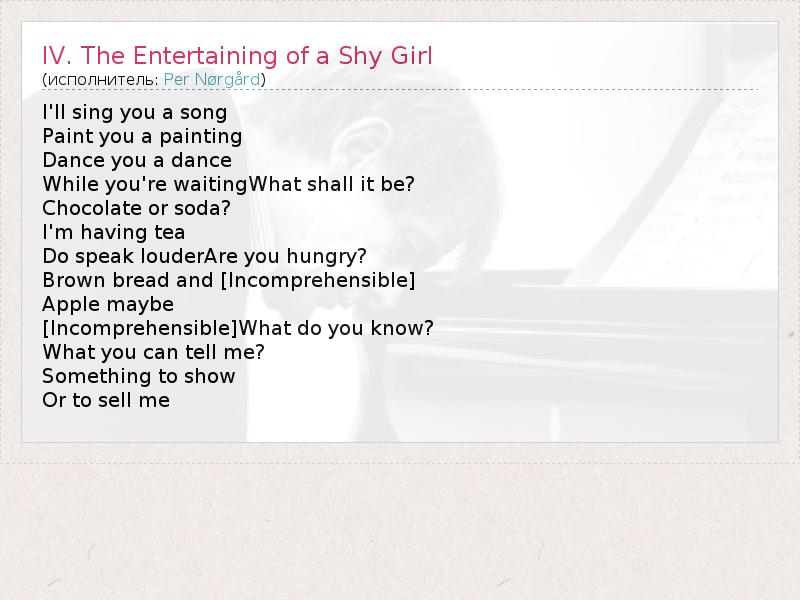 А как ты думаешь, о чем песня "IV. The Entertaining of a Shy Girl" ?
