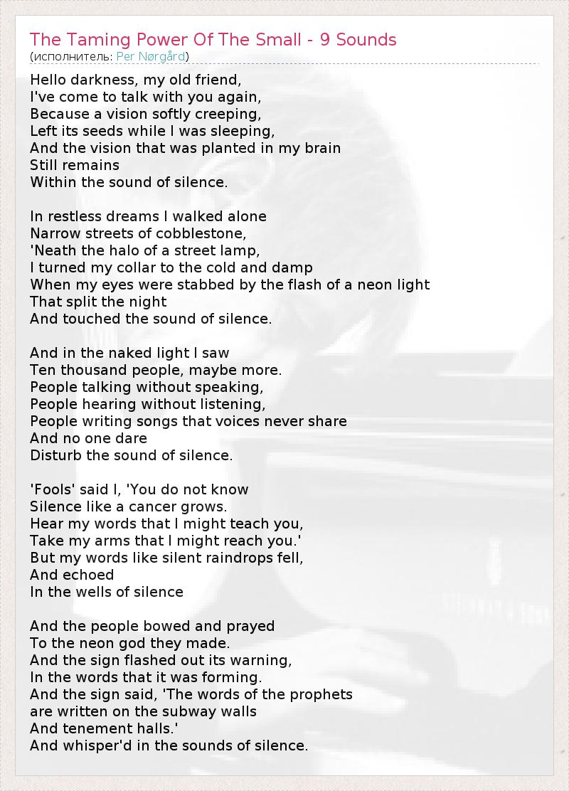 А как ты думаешь, о чем песня "The Taming Power Of The Small - 9 Sounds" ?