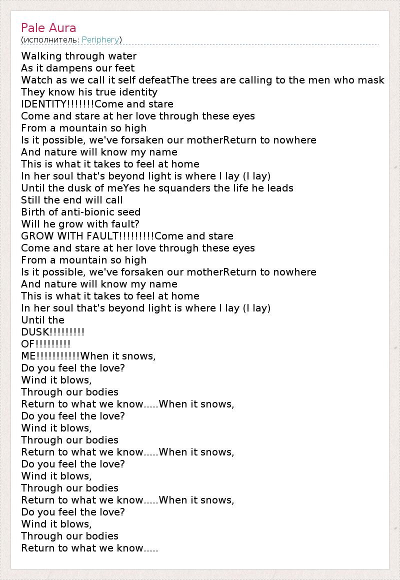 А как ты думаешь, о чем песня "Pale Aura" ?