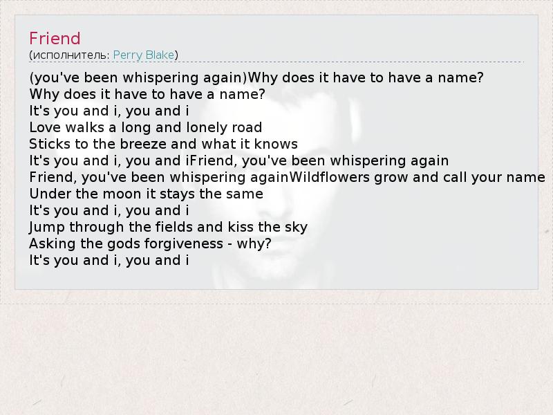 А как ты думаешь, о чем песня "Friend" ?