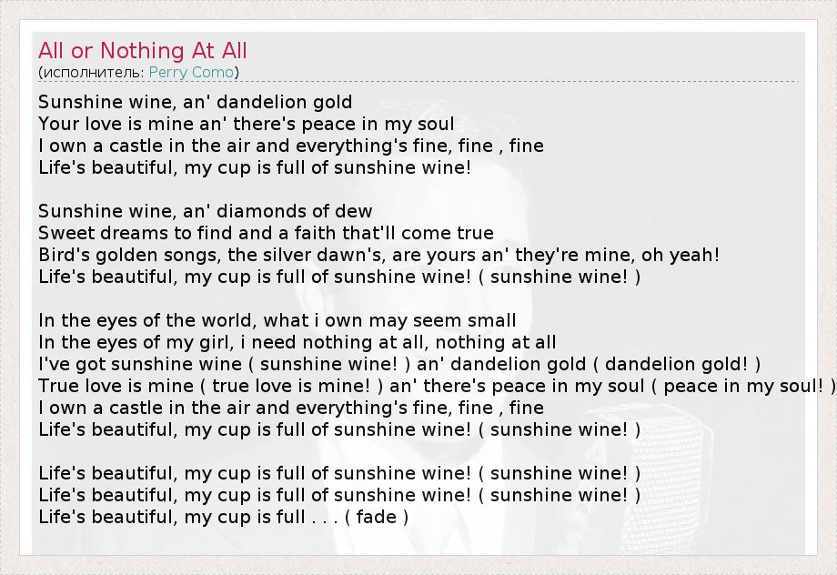 А как ты думаешь, о чем песня "All or Nothing At All" ?