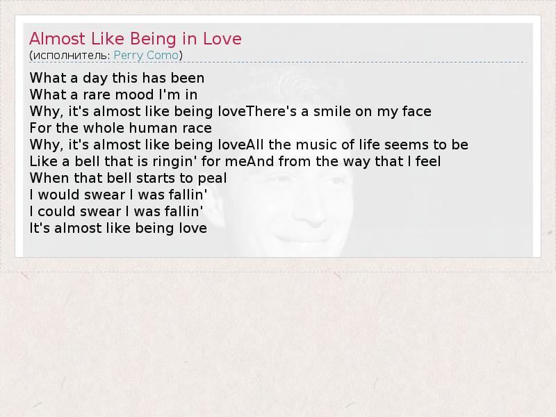 А как ты думаешь, о чем песня "Almost Like Being in Love" ?