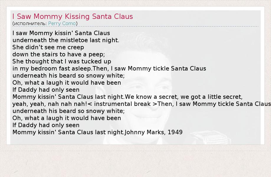 А как ты думаешь, о чем песня "I Saw Mommy Kissing Santa Claus" ?