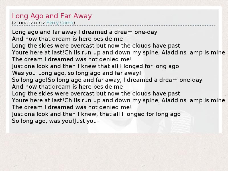 А как ты думаешь, о чем песня "Long Ago and Far Away" ?