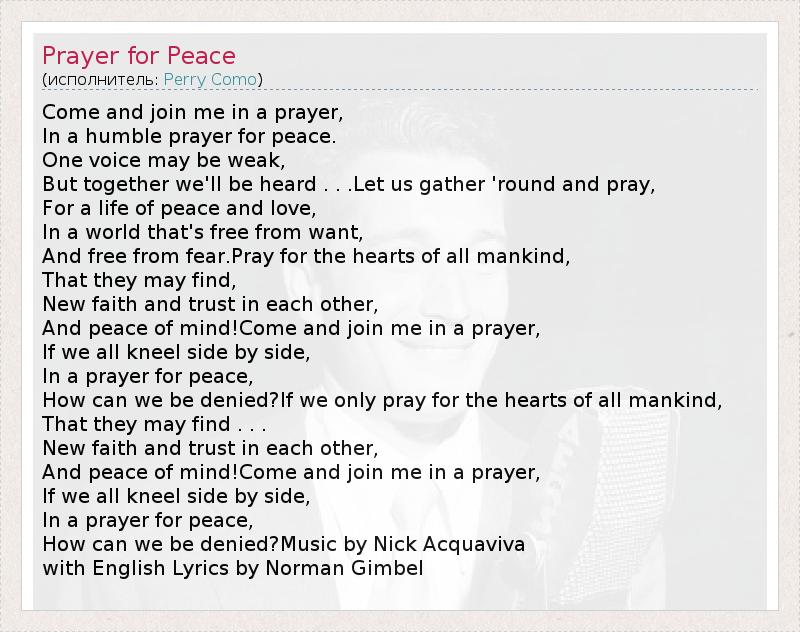 А как ты думаешь, о чем песня "Prayer for Peace" ?