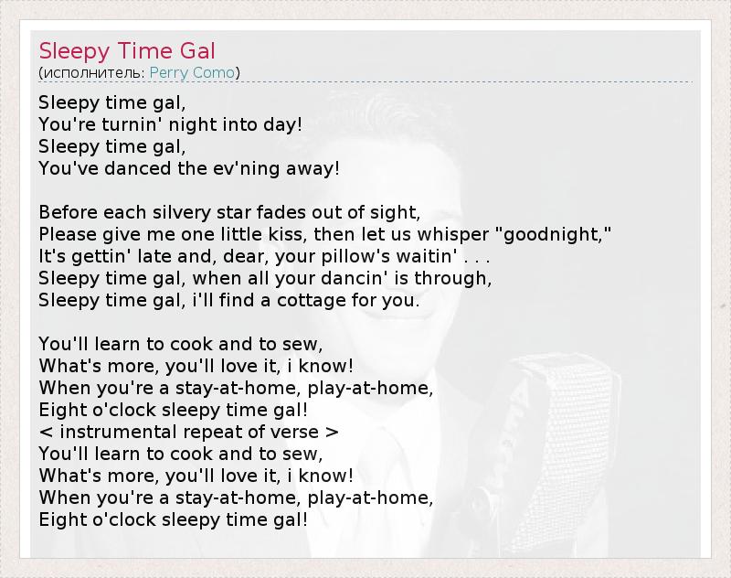 А как ты думаешь, о чем песня "Sleepy Time Gal" ?