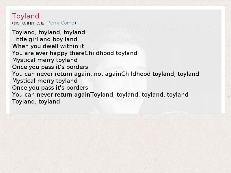 А как ты думаешь, о чем песня "Toyland" ?