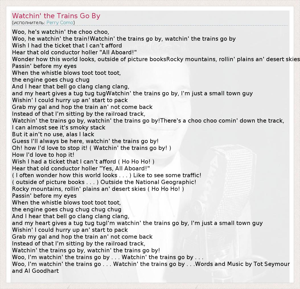 ГлавнаяИсполнителиPerry ComoWatchin' the Trains Go By