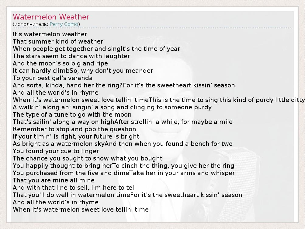А как ты думаешь, о чем песня "Watermelon Weather" ?