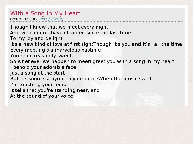 ГлавнаяИсполнителиPerry ComoWith a Song in My Heart