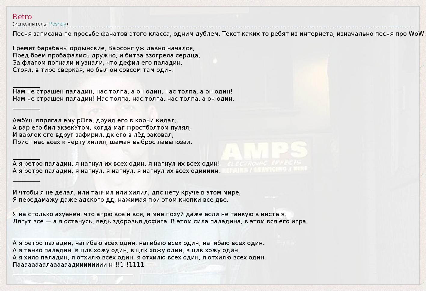 А я ретро паладин, я нагнул, я нагнул, я нагнул их всех одиииин.