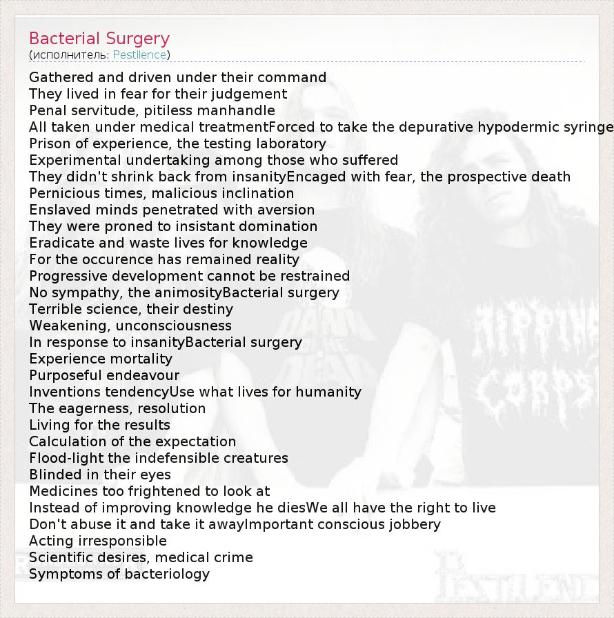 А как ты думаешь, о чем песня "Bacterial Surgery" ?