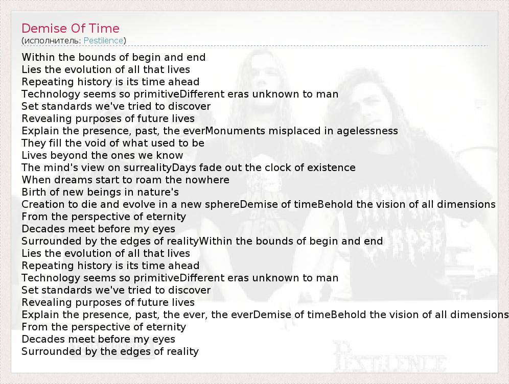 А как ты думаешь, о чем песня "Demise Of Time" ?
