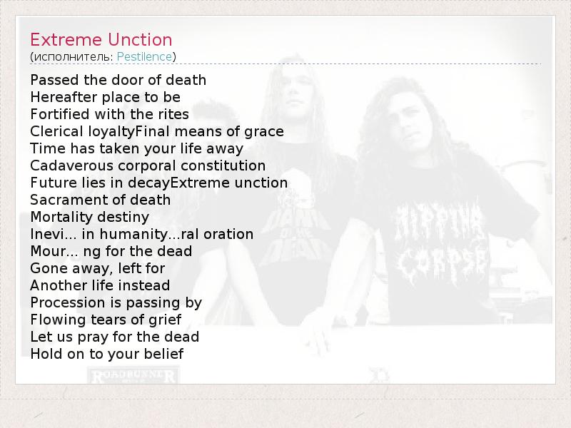 А как ты думаешь, о чем песня "Extreme Unction" ?