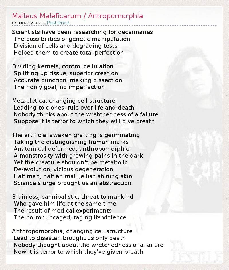 А как ты думаешь, о чем песня "Malleus Maleficarum / Antropomorphia" ?