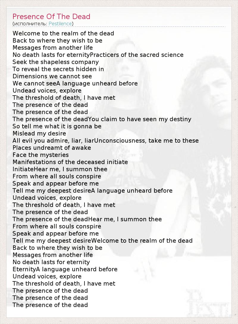 А как ты думаешь, о чем песня "Presence Of The Dead" ?