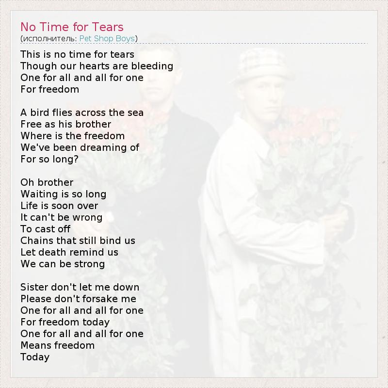 А как ты думаешь, о чем песня "No Time for Tears" ?