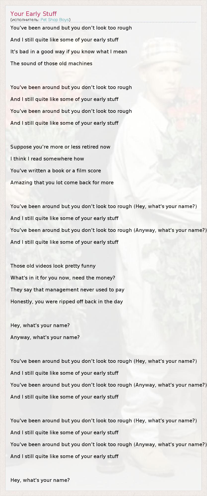 А как ты думаешь, о чем песня "Your Early Stuff" ?