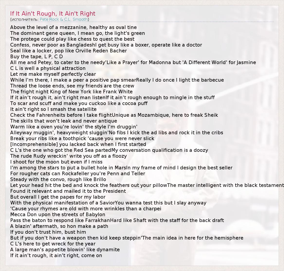 ГлавнаяИсполнителиPete Rock & C.L. SmoothIf It Ain't Rough, It Ain't Right