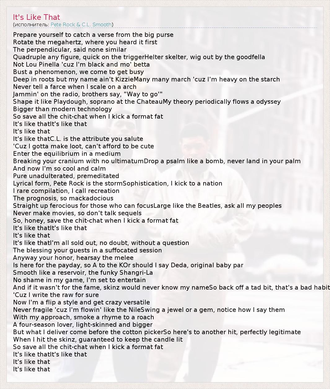 Lyrical form, Pete Rock is the stormSophistication, I kick to a nation