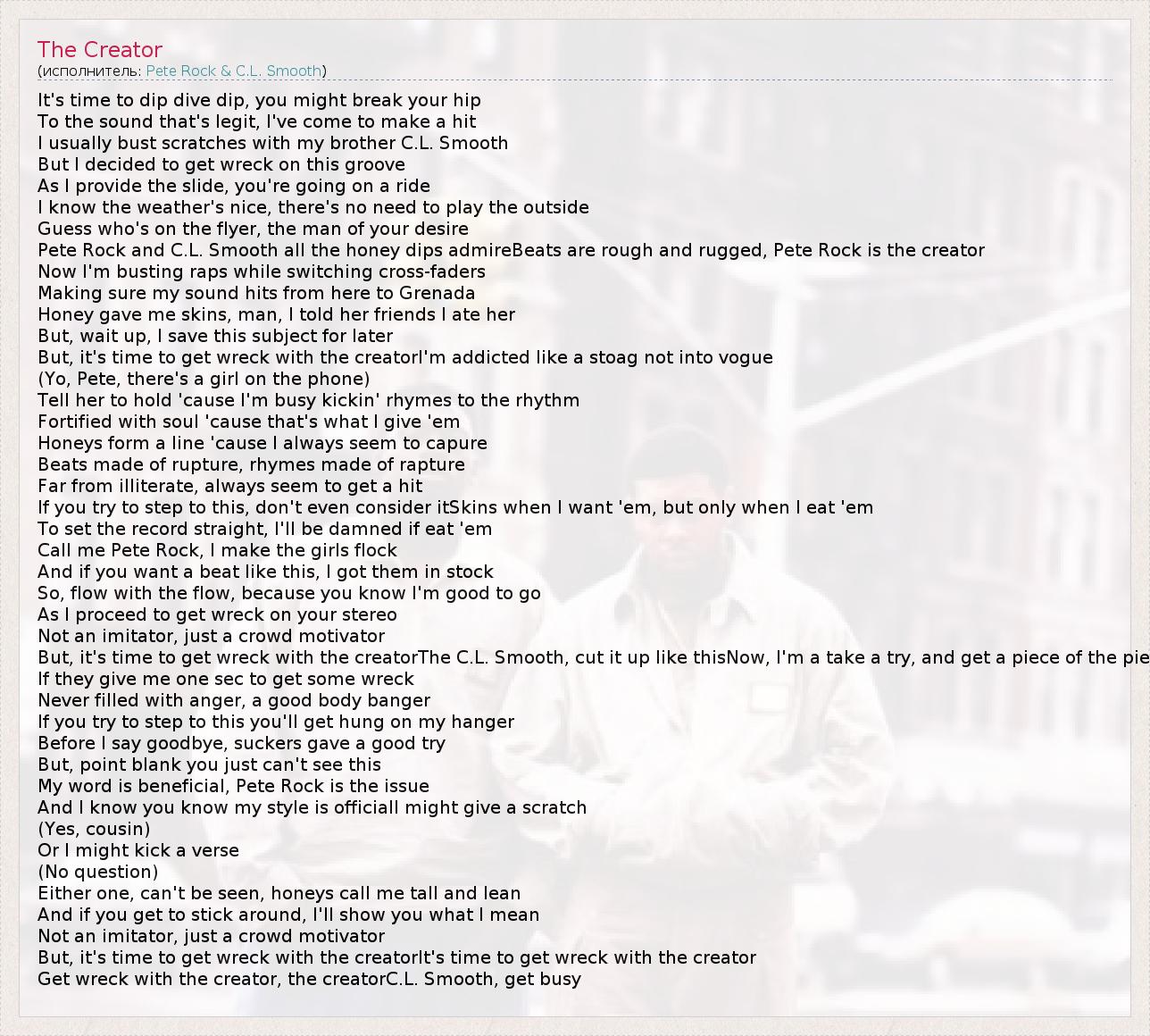 Get wreck with the creator, the creatorC.L. Smooth, get busy