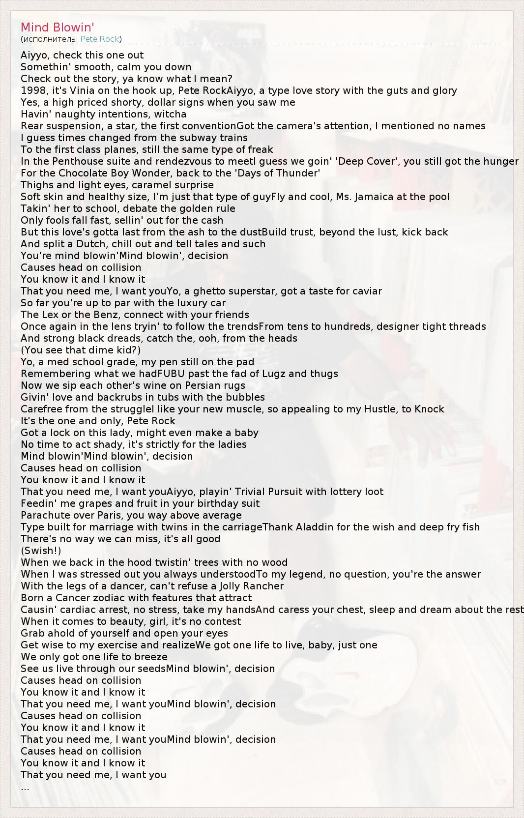 А как ты думаешь, о чем песня "Mind Blowin'" ?