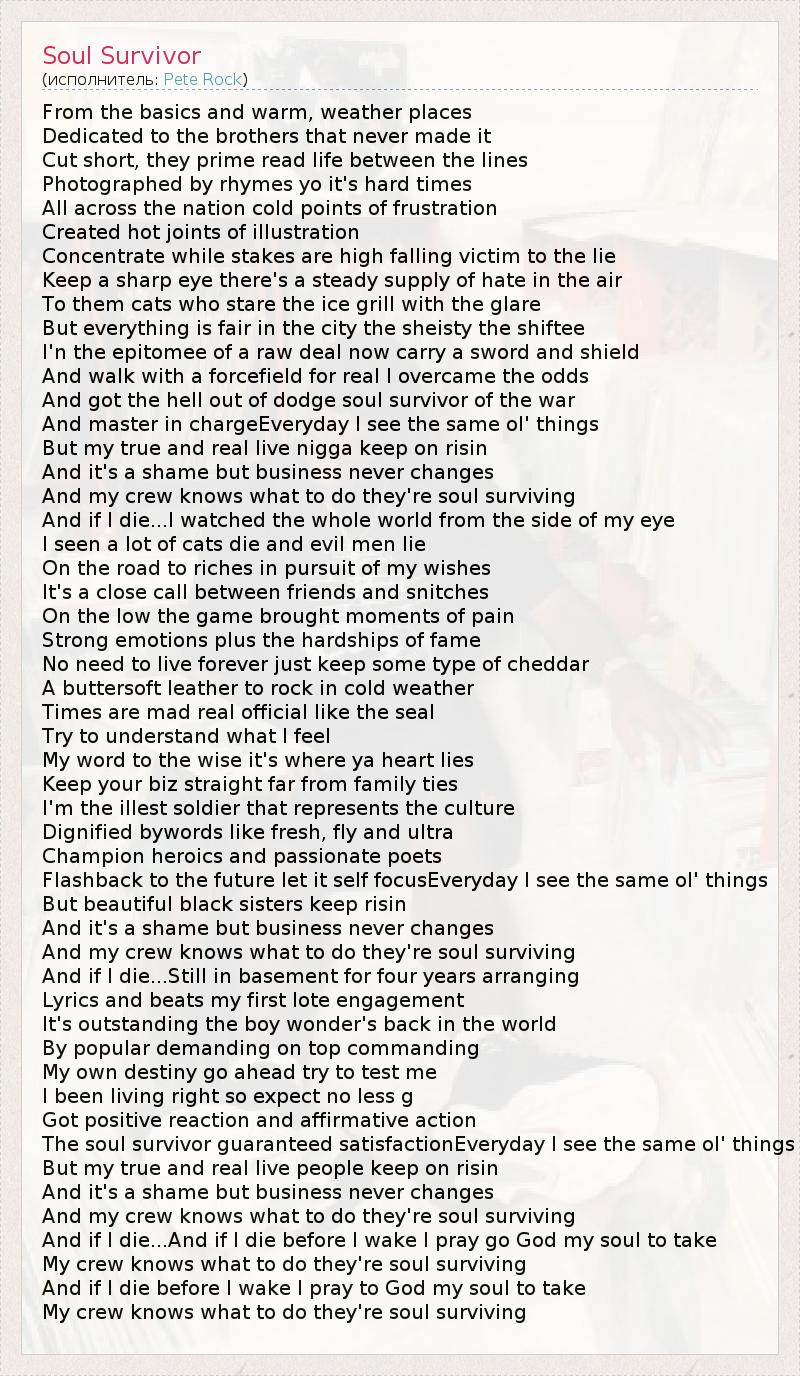 А как ты думаешь, о чем песня "Soul Survivor" ?